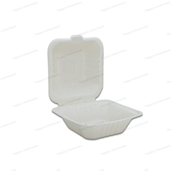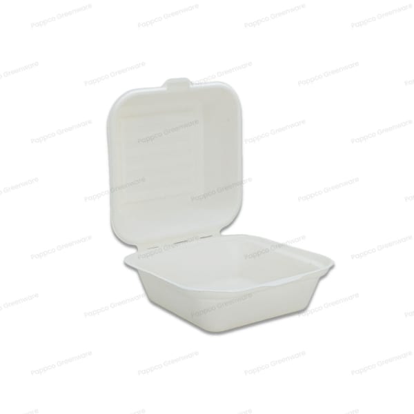 6 inch Burger Box Bagasse - Wide Base