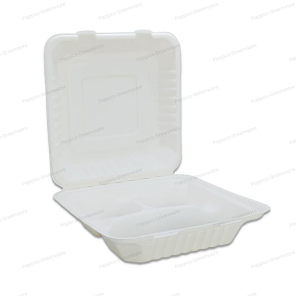 8 inch 3 Compartment Clamshell Bagasse