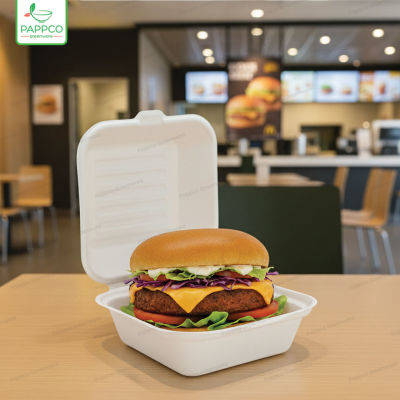 6 inch Burger Box Bagasse - Wide Base