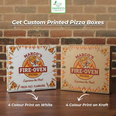• About GO Pizza Box: Pappco's GO Pizza Box range is made from food grade and odour free kraft paper. The strength, size, and height of the box are appropriate to keep your pizza in perfect shape. Steam vents on both sides enable air flow and keep your pizzas fresh for a longer time.